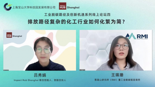 最后,落基山研究所(RMI)中國(guó)工業(yè)脫碳部門(mén)咨詢師王珮珊女士,Impact Hub Shanghai 聯(lián)合創(chuàng)始人、創(chuàng)投合伙人呂秀娟女士對(duì)本場(chǎng)活動(dòng)的精彩內(nèi)容進(jìn)行了總結(jié)觀察。王珮珊認(rèn)為:首先,從化工行業(yè)的脫碳路徑來(lái)看,氫能和CCUS尤其重要。綠氫既可以作為燃料,也可作為原料,實(shí)現(xiàn)降碳效果;CCUS技術(shù)可與不同生產(chǎn)行業(yè)結(jié)合,在排放路徑復(fù)雜的全產(chǎn)業(yè)鏈化工行業(yè)中具有優(yōu)勢(shì)。其次,化工行業(yè)未來(lái)的發(fā)展模式需要多種路徑相結(jié)合,也需要不同規(guī)模的產(chǎn)業(yè)融合和跨行業(yè)合作。第三,隨著航空、海運(yùn)等交通運(yùn)輸方式對(duì)低碳發(fā)展的進(jìn)一步需求,綠氫可作為原料,生產(chǎn)綠色甲醇和綠氨等燃料,這將會(huì)是化工行業(yè)新的增長(zhǎng)點(diǎn)。最后,循環(huán)經(jīng)濟(jì)對(duì)化工行業(yè)的脫碳也非常重要。除了產(chǎn)業(yè)方和創(chuàng)新企業(yè),消費(fèi)者也可通過(guò)使用綠色、生物基可降解產(chǎn)品、減少塑料的使用、完善垃圾分類(lèi)等方式,參與推進(jìn)廢棄物回收和資源再利用。