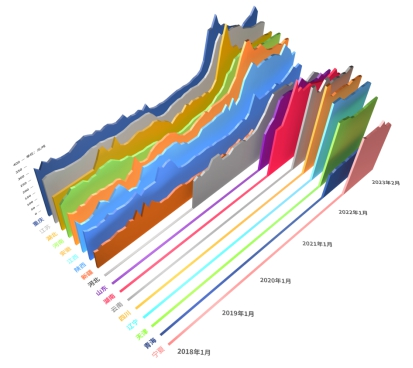 分區(qū)域來看,2023年2月,山東、江西兩堿工業(yè)鹽出廠價格較2023年1月上漲;云南、四川、遼寧、重慶、江蘇、河南、天津、安徽、湖南、河北、寧夏、陜西、青海、新疆兩堿工業(yè)鹽出廠價格較2023年1月下跌;湖北兩堿工業(yè)鹽出廠價格較2023年1月持平。