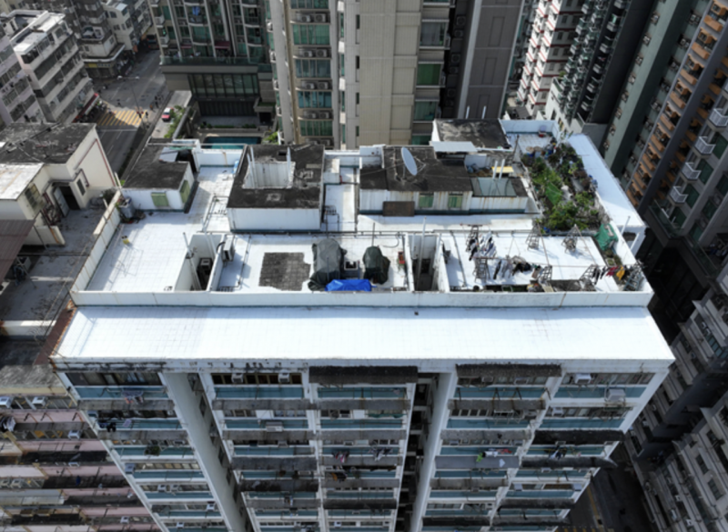 圖:香港深水埗永明無(wú)電制冷涂層公益涂覆項(xiàng)目