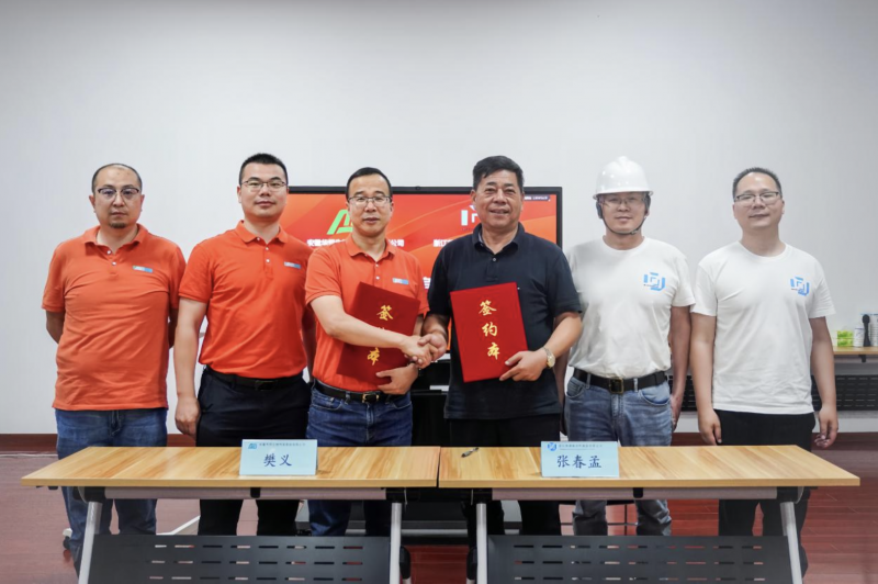 美源新材董事長張春孟(右三),華恒生物董事、副總裁樊義(左三),代表雙方共同簽署戰略合作協議