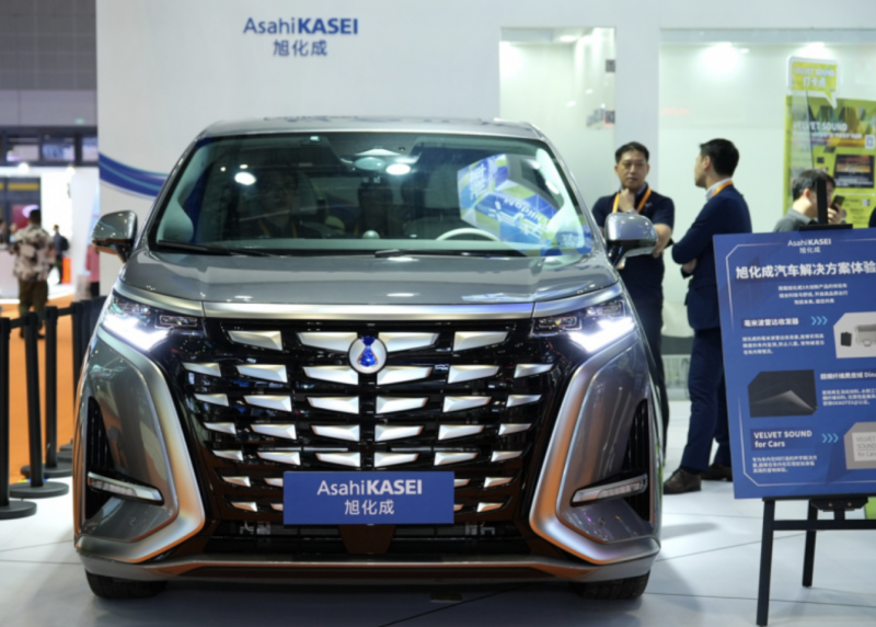 在“汽車革新”區域,旭化成還展出了能達到與玻璃同等水平的高耐磨耗性及耐久性樹脂玻璃用硬化涂層、專為車內空間打造的聲學解決方案VELVET SOUND for Cars等諸多創新型成果。