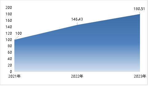??呂梁孝義方面,2021年以來,孝義氫能高質量發展指數漲速更加明顯,截至2023年,指數報180.51點,同比上漲23.27%,年均復合增長率達34.35%。