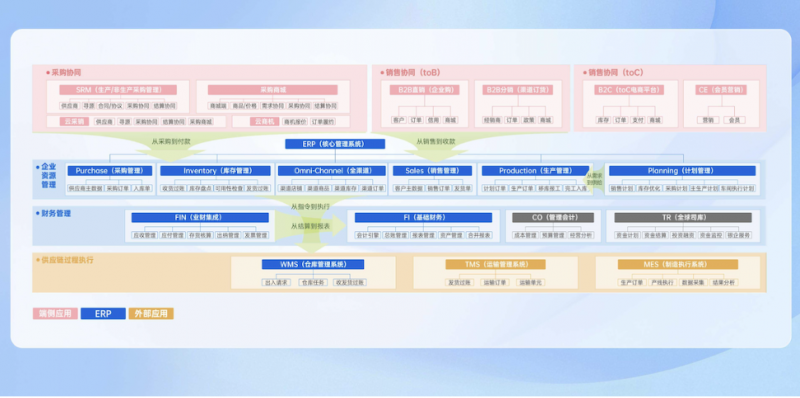 相對于傳統ERP只側重于企業內部資源管理的功能體系,端點科技新一代ERP以供應鏈為核心,通過 “數據驅動+智能決策+生態協同” 的全鏈協同運行體系,將賦能目標擴展至企業上下游的生態合作伙伴,解決采銷一體、業務一體、上下游協同等問題,實現全鏈路高效協同運營,讓數字技術成為真正的生產力工具。
