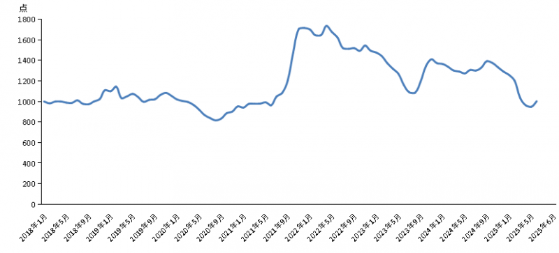 新華財(cái)經(jīng)北京7月17日電(陸子琛、蔣正陽(yáng))2025年6月份,新華·中鹽兩堿工業(yè)鹽價(jià)格指數(shù)報(bào)1002.84點(diǎn),較上期(2025年5月)上漲55.06點(diǎn),漲幅5.81%;較基期(2018年1月)上漲2.84點(diǎn),漲幅0.28%;較周期內(nèi)最高點(diǎn)1736.66點(diǎn)(2022年4月)下跌733.82點(diǎn),跌幅42.25%;較周期內(nèi)最低點(diǎn)816.2點(diǎn)(2020年8月)上漲186.64點(diǎn),漲幅22.87%。
