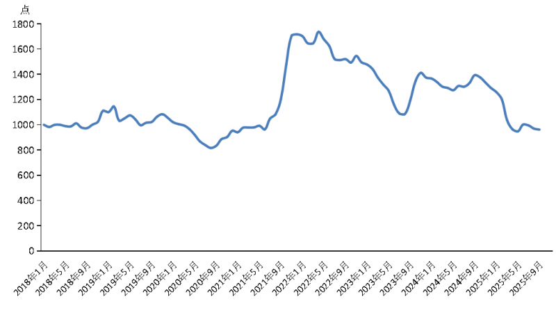 新華財經(jīng)北京10月24日電(陸子琛、蔣正陽)2025年9月份,新華·中鹽兩堿工業(yè)鹽價格指數(shù)報957.06點,較上期(2025年8月)下跌12.14點,跌幅1.25%;較基期(2018年1月)下跌42.94點,跌幅4.29%;較周期內(nèi)最高點1736.66點(2022年4月)下跌779.60點,跌幅44.89%;較周期內(nèi)最低點816.2點(2020年8月)上漲140.86點,漲幅17.26%。