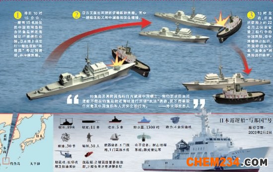 中華化工網訊:2010年9月7日,釣魚島附近海域,一艘中國拖網漁船受到日本海上保安廳一艘巡邏船沖撞,后又受到日方另外兩艘巡邏船跟蹤、沖撞、截停、登船、檢查。