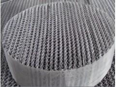 絲網波紋填料是填料發展史的一個重要里程碑,這種填料由壓成波紋的絲網片排列而成,波紋片傾角30°或45°,相鄰兩波紋片方向相反,在塔內填裝時,上下兩盤填料交錯90°疊放。具有高效、壓降低和通量大的優點,產品有BX、CY型,常用于難分離和熱敏性物系的真孔精餾,常壓精餾和吸收過程。