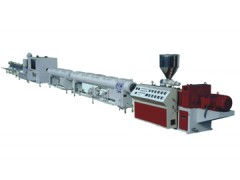生產PVC發泡地板機組由雙螺桿塑料擠出機、自動真空上料機、除濕烘干混料機、板材機頭、加熱校平裝置、排輥托冷裝置、裁邊裝置、牽引機、剪切機、排輥輸送機等組成。機組結構緊湊,性能優越。螺桿、螺筒經優化設計,并采用高性能合金鋼38CrMoAiA專業加工,使整機具有塑化均勻,擠出量穩定,產量高,壽命長等優點。 主機螺筒采用鑄鋁加熱器加溫,風冷卻,精密電控儀表控制溫度。精密的定型壓光裝置,通過其良好的調整功能使板材定型優良。切割部分采用定長切割裝置,保證板材長度精確. PVC發泡地板生產線,我廠是國內先進的PVC發泡地板生產線制造商之一。
