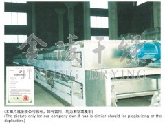 將物料平整而均勻地鋪于傳動鋼帶上,傳動鋼帶帶動物料經過箱體,復合熱源加熱物料,水份由排濕機排出。物料由下料裝置清理出料,生產過程中可以通過調節鋼帶的傳動速度、輔料的厚度以及箱體的溫度來控制物料的烘干時間。