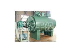 本機是一種新穎臥式間歇式真空干燥設備,濕物料經傳導蒸發,帶有刮板攪拌器不斷清除熱面上的物料,并在容器內推移形成循環流,水份蒸發后由真空泵抽出。