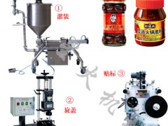 星火機械為您提供方案流程: 火鍋底料灌裝 ->> 火鍋底料瓶旋蓋 ->> 產品貼標 ->> 配送、進入市場