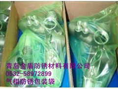 青島金盾氣相防銹袋是將氣相防銹膜按照包裝金屬的尺寸進行加工的一種含有氣體防銹劑的包裝袋,分為平口袋、五面體立體袋、六面體立體袋、拉繩袋等規格。是防銹膜一種最普遍的運用方式。具有使用方便、運輸方便、量身定做的特點,深受汽配、五金、電子等行業的歡迎。