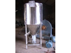 立式攪拌機,采用的圓筒豎放的形式,中間穿插攪龍,軸承在圓筒下方,連接固定攪拌電機,配有上料機構。物料采用攪龍將中間物料攪拌上拋的形式來達到混合均勻的效果。