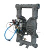 RG粉末隔膜泵工作原理:在隔膜泵的兩個對稱工作腔中,各裝有一塊有彈性的隔膜,連桿將兩塊隔膜結成一體,在氣源進口出安裝兩位五通電磁閥,壓縮空氣從泵的進氣接頭進入中間體后,推動兩個工作腔內的隔膜,驅動連桿聯結的隔膜同步運動。與此同時,另一工作腔中的氣體則從其隔膜的背面排出泵外。當活塞達到行程終點,配氣閥機構則自動的將壓縮空氣引入另一工作腔,推動隔膜泵朝反向運動,這樣就形成了兩個隔膜的同步往復運動。每個工作腔中又設置兩個單向球閥,隔膜的往復運動,造成工作腔內容積的改變,迫使兩個單向球閥交替的開啟和關閉,從而使粉末連續的吸入和排出。