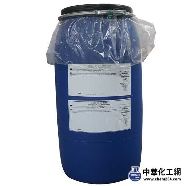 ASE-60是一種含有酸性基團的交聯型高分子乳液增稠劑,當以水兌稀并用堿中和時,其乳膠粒子很快膨脹,在這種條件下,乳液將變澄清且很粘稠。