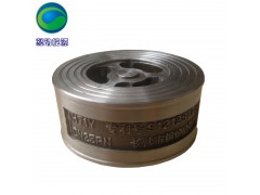 本實用新型專利產品所有零件均采用耐腐蝕不銹鋼材料,可在任何位置管路上安裝使用,以防止介質逆流,鍋爐給水系統止回。其連接方式是利用原有管道兩法蘭對夾,即可以投入運行。該產品各項技術指標均優于目前市場上任何一種止回閥,密封非常可靠,開啟靈敏,并且開啟壓力低,閥瓣開啟均勻,無偏斜現象。其帶藝術性的外觀設計,使其漂亮美觀,精工細琢,又顯其。其應用范圍非常廣泛,凡水;汽;油;酸;堿;氫;氨,特別消防管道均可以使用。由于其結構新穎獨特,性能優異,本產品獲國家專利,專利號為:91212912.3。本產品執行標準:JB/T8937-1999《對夾式止回閥》 ,本產品已取得國家頒發的特種設備制造許可證,編號:TS2743006-2010 。