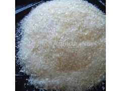 ⑵、食用明膠為淡黃色至黃色細粒,應保持干燥、潔凈、均勻,無夾雜物。本品是由豬、牛、騾、馬的皮子之角料,(其它動物皮除外)經除雜、消毒、蒸煮形成汁子,再經脫水、制造形成的膠條、膠片、粉粒狀物(一般常用粉粒狀膠)。應通過孔徑4mm標準篩網即5目。本品含有18種氨基酸和90%的膠原蛋白,富保健美容效果,具有優良的膠體保護性、表面活性、粘稠性、成膜性、懸乳性、緩沖性、浸潤性、穩定性和水易溶性。