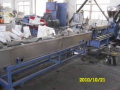 PES造粒機(jī)基本結(jié)構(gòu)形式:1.雙螺桿主機(jī) 2.水拉條機(jī)頭 3.水槽 4.吸干機(jī) 5.切粒機(jī)