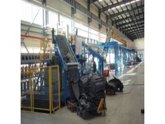 胎面/胎側(cè)復(fù)合擠出生產(chǎn)線——由兩臺或三臺銷釘式冷喂料擠出機(jī)組成。配置了液壓自動(dòng)復(fù)合胎面擠出機(jī)頭,實(shí)現(xiàn)了幾種不同的膠料在機(jī)頭內(nèi)一次復(fù)合擠出成型,由于設(shè)計(jì)時(shí)螺桿、機(jī)頭采用了特殊機(jī)構(gòu)和獨(dú)特的技術(shù)參數(shù),所以擠制的胎面致密度高,塑化混煉效果好,斷面尺寸精確、穩(wěn)定,表面光滑。選用不同的機(jī)頭和螺桿參數(shù)可適用于各種規(guī)格的工程胎、子午胎、斜交胎的胎面、胎側(cè)復(fù)合擠出。