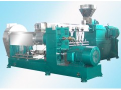 化學(xué)交聯(lián)造粒機組第一階為KS型高速同向雙螺桿擠出機,第二階為KSD系列單螺桿擠出機,構(gòu)成雙階式復(fù)合機組。化學(xué)交聯(lián)電纜料偏心水霧造粒機基本結(jié)構(gòu)形式:1.PE原料倉 2.抗氧劑料倉 3.DCP貯罐 4.失重電子秤 5.失重式計量泵 6.雙螺桿主機 7.單螺桿主機 8.偏心水霧切粒機 9.離心脫水機 10.沸騰床 11.成品料倉 12.自動包裝機 雙階式機組的另一應(yīng)用范例,與低壓短流道機頭,偏心水霧熱切技術(shù)相結(jié)合,使PE樹脂,抗氧劑等實現(xiàn)高效低溫混合混煉,避免預(yù)交聯(lián)。