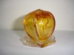 金茶水外觀呈深褐色的液體,使用時用噴槍或毛刷刷在清潔好的玻璃工件上,然后放入窯爐內,從室溫升溫到520℃–580℃的溫度,恒溫10-20分鐘后就可以慢慢退火,就成了一件金茶色的玻璃制品了,金茶水這種彩色膜與釉結合牢固、結構致密,不易脫落,光亮如鏡,化學穩定性好。